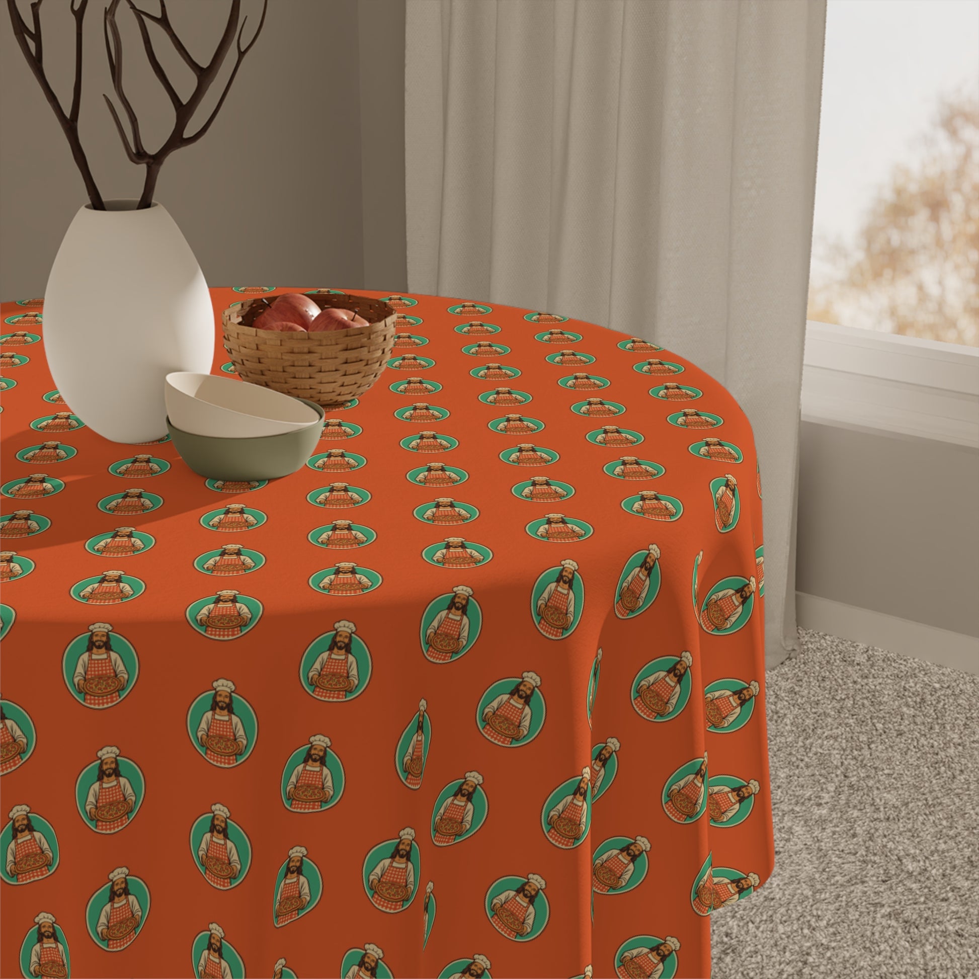 Bring joy to every meal with this fun, Blessed Appétit tablecloth featuring Jesus, the Master Chef! Perfect for family dinners, gatherings, or any time you want a fun, faith-filled, playful touch on your table.