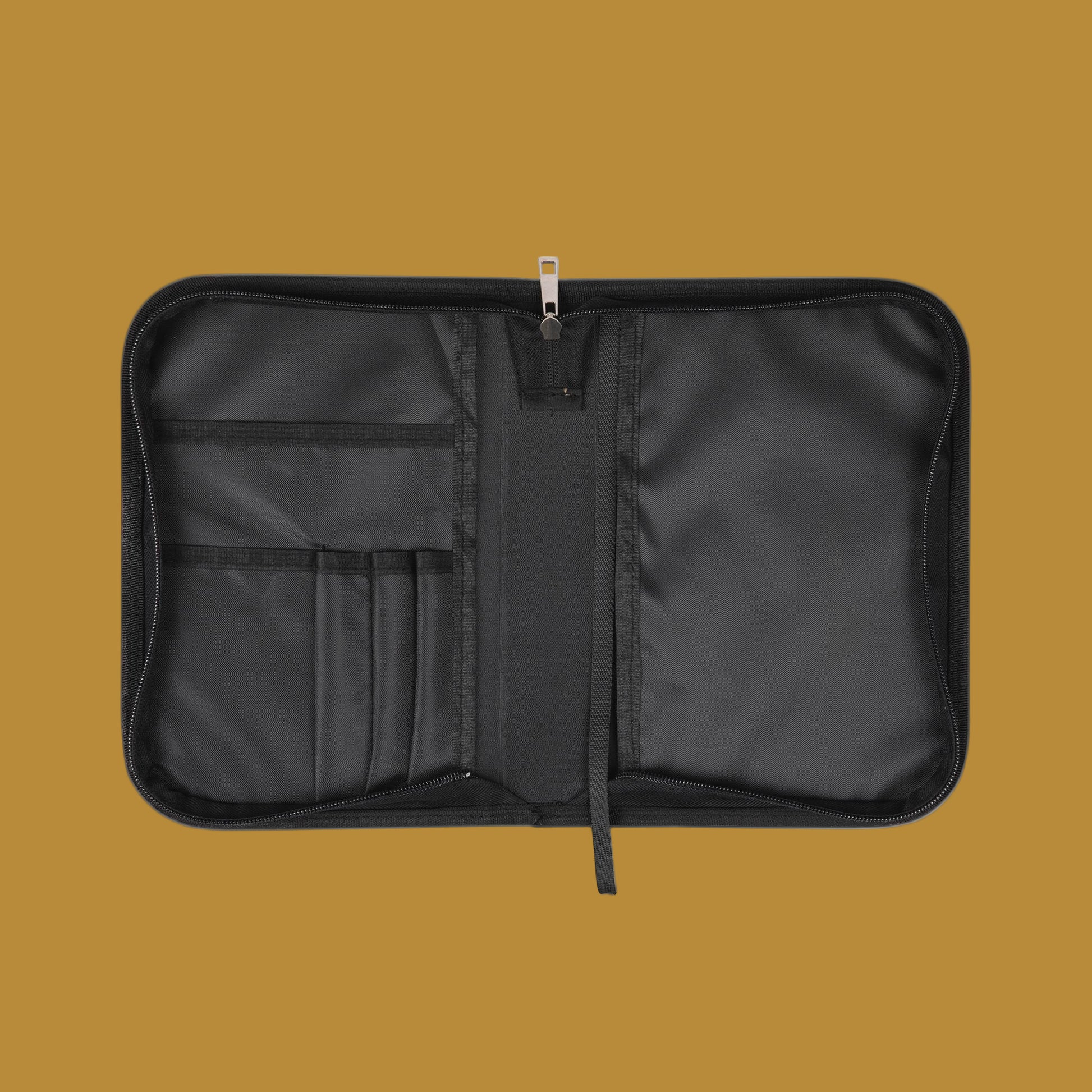 - Multiple interior compartments and pockets for notes, pens, and cards